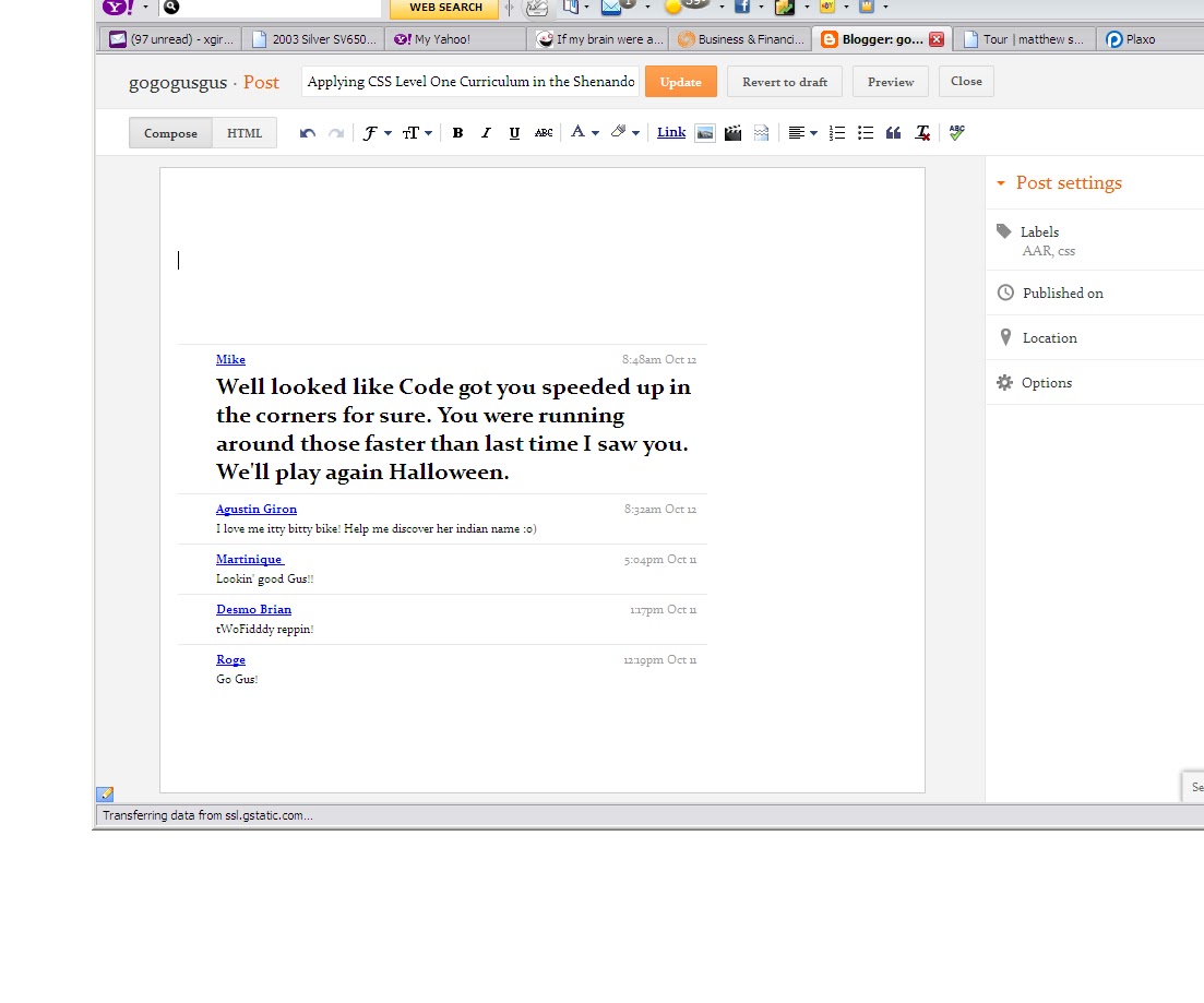 Well looked like Code got you speeded up in the corners for sure. You were running around those faster than last time I saw you. We’ll play again Halloween.